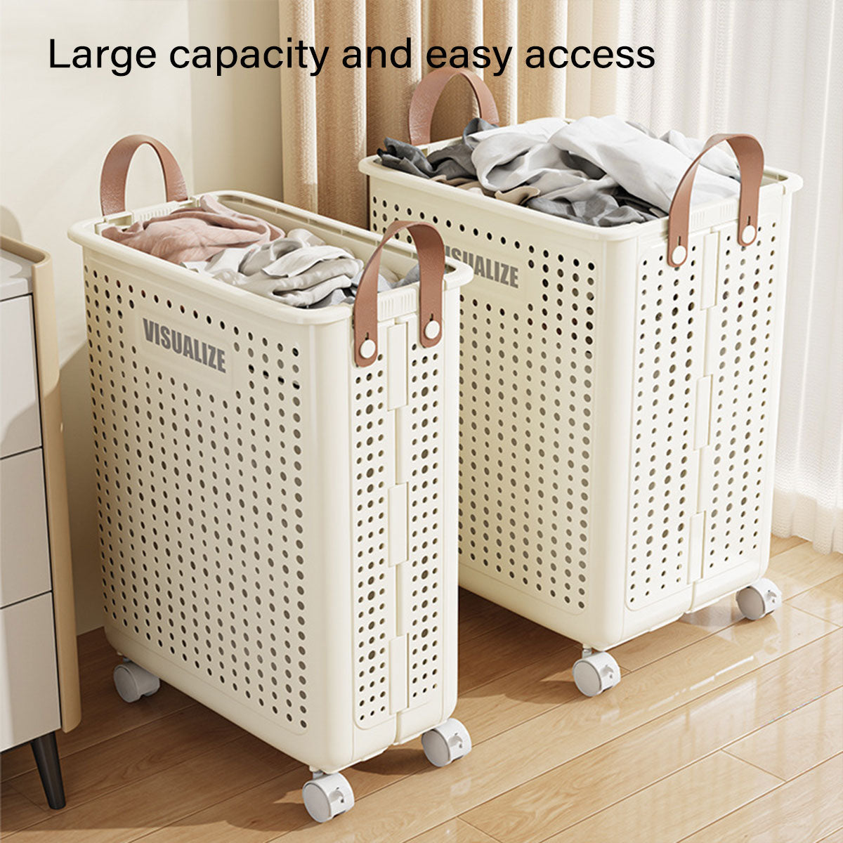 Smooth-rolling wheels: Effortlessly transport laundry from room to room.