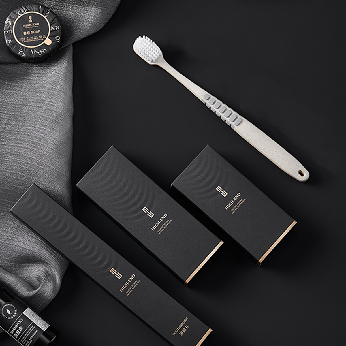 This hotel-grade toiletries set offers essential hygiene items for guests, perfect for hotels, homestays, or short-term rentals. It includes disposable toothbrushes with toothpaste, shampoo, shower gel, and soap, all in elegant packaging. Compact and travel-friendly, the set combines convenience with a touch of luxury, ensuring guests have everything needed for a comfortable stay.